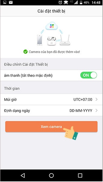 Sau khi kết nối thành công, giao diện Cài đặt thiết bị sẽ hiện như hình dưới. Nhấp Xem camera để bắt đầu sử dụng camera EZVIZ mà quý khách vừa đã kết nối.