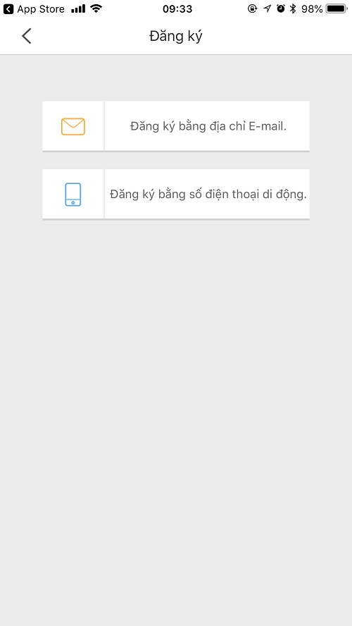 Có nhiều phương thức để tạo nên 1 tài khoản, có thể chọn phương thức đăng ký qua Email hoặc số điện thoại. Trong bài này Ezviz sẽ chọn qua Email để hướng dẫn, với số điện thoại thì quý khách sẽ thực hiện tương tự nhé.