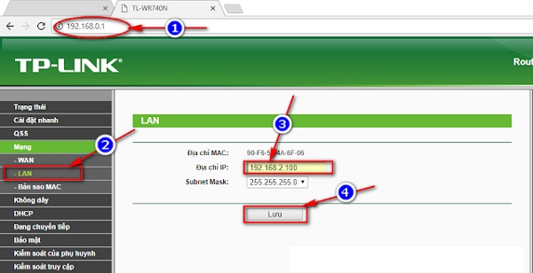 Bước 1: Đăng nhập vào switch wifi TP-Link và thay đổi địa chỉ IP để tránh trùng hợp với IP của Modem. Mở trình duyệt internet lên và làm theo các thao tác dưới đây: