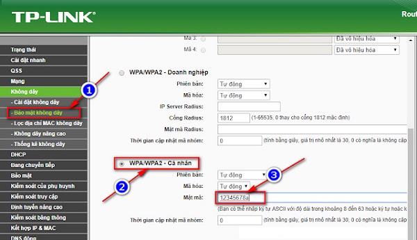 (2) Tích chuột chọn WPA/WPA2 – Cá nhân.